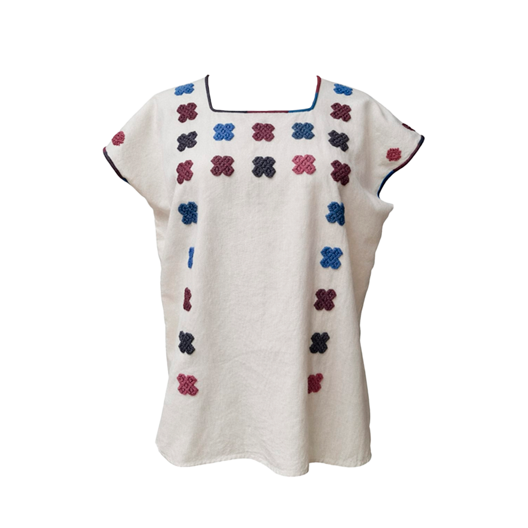 Huipil bordado de Chenalhó, Chiapas, elaborado artesanalmente por mujeres tsotsiles sobre tela de algodón. Presenta delicados bordados florales en relieve, distribuidos de forma armoniosa en tonos sobrios que realzan la pureza del fondo claro. Cada pieza refleja identidad, paciencia y maestría textil, convirtiéndose en una prenda única que equilibra tradición, elegancia y uso contemporáneo.