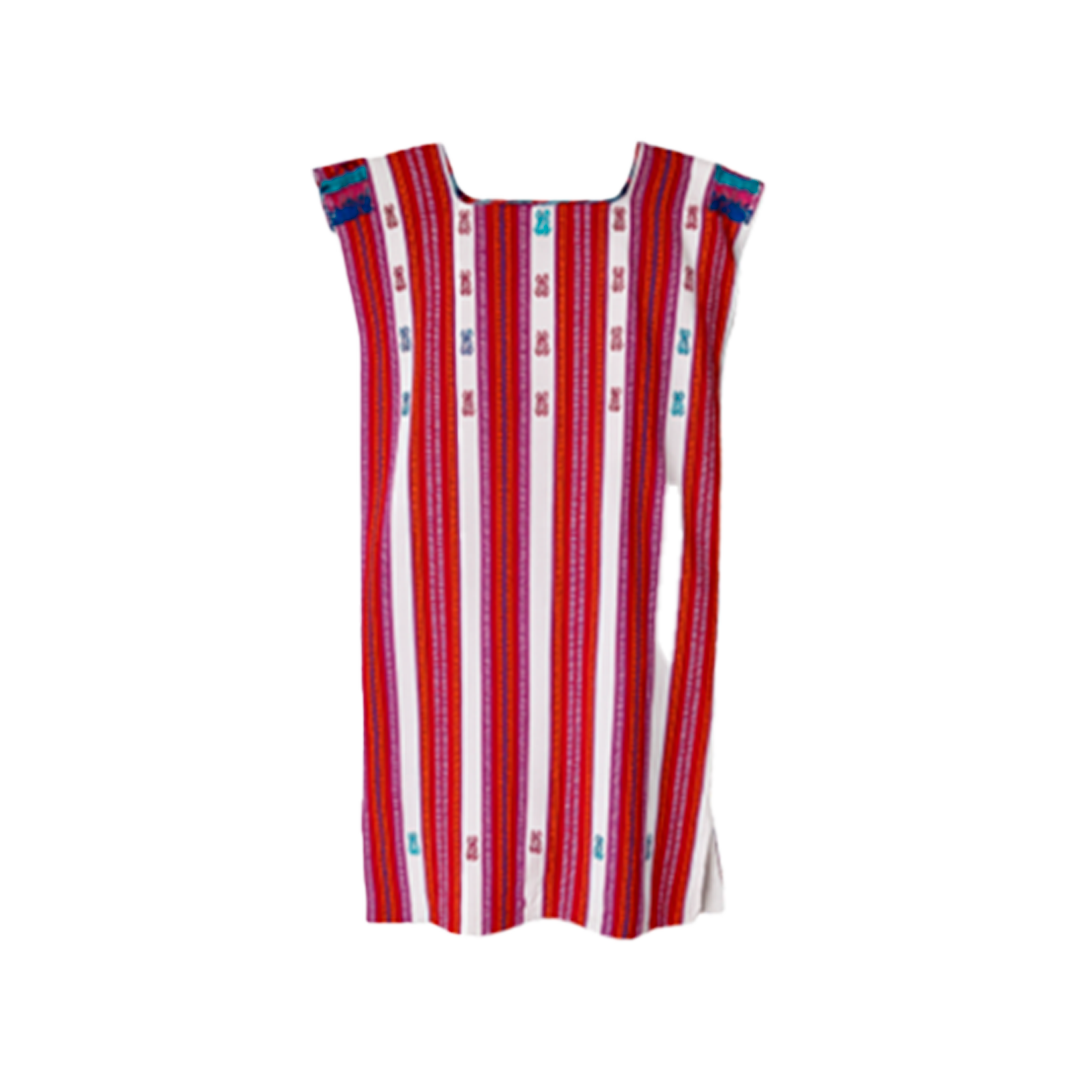 Confeccionado por artesanas de la comunidad, este vestido está tejido con hilos de algodón y refleja los colores tradicionales que distinguen la identidad cultural de Pantelhó.